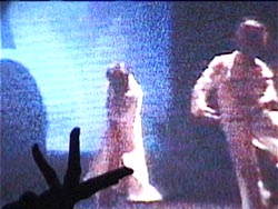 Dancers/ SensingThrough practice and training (including performance and choreography), dancers acquire specialist movement skills that frequently include conceptual/ experiential ways of sensing the space through and in which the body moves. The form of this sensing experience may vary across techniques, but normally has external as well as internal referents. Trigger/ Sensor and networked environments (see remote spaces) are unique spaces for the dancer to work in... spaces in which the sound is given spatiality (as in mapped within certain regions) and one's presence is linked electronically to partners far away. How the dancer experiences this and how this experience informs his or her moving as well as how it might inform the designers of such environments is an open question. Questions and Answers:Question/ Request #2: describe some aspect of your experience dancing in the two spaces. Answer #1: Moving in a triggered environment can be really exciting, somewhat like a treasure hunt or a game as you are searching for the sensor to set off a myriad of sounds/images. It gives the sense that the space is somehow alive and interacting with you. Also the advantage of sound being triggered is that you receive immediate sensory feedback - you hear the space react. The sound (as opposed to the video/ image) also gives a kinesthetic effect because there are sound vibrations that affect one's nervous system, the kinesthesia of the sound is much different than the video being projected on the back screen. Because you don't automatically sense the changes in image if you don't happen to be looking at the screen, the images triggered have a greater impact on those viewing from an audience perspective. I am still mediating different reactions around the virtual partnering (see Cellbytes). There is something about two bodies moving together in space, sharing a common kinesphere that creates connection- no matter how far apart they are in the space...a sense of physical presence...hearing breath, smelling, seeing etc. Virtual presence is very different for me in that there doesn't seem to be that same transfer of energy between physical bodies. In fact, I sense very little actual connection with the dancer who may be on the screen behind me. This also seems to deal with the way we have been playing with choreography thus far in the process. The choreography doesn't really give me a chance to see the other dancer and move in a way that shows I am intentionally connected...we have been spliting up duets that were created in physically proximity, and then putting them in virtual space. The movement intention is still intended to be done in proximity...perhaps if the movement was created apart so the linkups were intentional? I think the 8 second delay is problematic in that it creates not only space distance, but time distance. More virtuality... However, as a viewer, seeing the two bodies moving together (one virtual, one live) can be quite beautiful, and you do see the connections between the movers...is this because the mode of perception is mainly visual? As human creatures we perceive primarily in our "visual" sensing mode in most areas of our lives...especially on the web viewing, the two dimensionality of the screen puts the images in a different relationship that makes them seem more connected (ie. they are within the same frame so we see them as connected entities). (Kristy Topham Petty) Answer #2: Dancing in the intelligent space in the beginning of the project sensitised me to the notion of triggering and the existence of an electronic field out there responding to the physical movement of the performer. But it still was within the concept of a conventional auditorium. When we started to stream images and data both ways from the two spaces it brought in a whole new sense of extended presence, which is still abstract, but nevertheless part of my sensory eperience now. Getting to know the performers and developing associations and familiarity with movement phrases made that space more tangible. (Jayachandran Palazy) Answer #3: A dancer's sensorium is a key conductor (amongst others) of their moment to moment experience while performing, and this experience as it manifests (presence?) is a prime component of that which is perceived or watched. This varies greatly from performer to performer -- it's an energetic process and often simultaneously stimulated by the space inside the body/ outside the body and the dynamics of being watched. Thinking/ imaging processes may be involved -- attention techniques such as those proposed by Forsythe in Improvisation Technologies for example. There are many other techniques for this attention. However, attention and/ or felt experience is not enough in itself, nor does one size or technique fit all. These things are essential for and arguably unique to dance, but we haven't had enough time in these interactive/ interface systems to really start to chew on them. However, I do think sensor technologies propose to change the environment in which a dancer may perform/ move/ dance -- there is no reason that this change would not be a qualitative shift in which case it would have significant relevance for dancers. (Scott deLahunta) |
