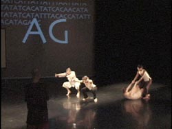 Working with SoftwareQuestions and Answers:Question #6: describe your experience of working with the MAX or Image/ine interface in real time in co-operation with the other artists in the space - as you change those tiny parameters on the screen - what are you looking for? is it an intuitive process for you? Answer #1: Working with MAX in realtime for me is a matter of at first finding the expected range of data coming from the space. For sound to be responsive it is necessary to take advantage of the full range of data, being able to anticipate the minimum range of activity and the maximum. After this mundane step is taken, then it becomes a matter of finding the "interesting" range of whatever patch has been previously created and then of saving those parameters. I look for audio responses to movement to somehow approximate what the dancers feel when they are moving, striving to get sounds to have more energy when the dancers exert more, etc.. This is not particularly intuitive for me except in terms of drawing on my 10 years of experience in this process. It is a matter of tedious trial and error otherwise known as "tweaking". (John Mitchell) Question #7: what is MAX and what is MIDI - and how and why are we using these two technologies here in this project? Answer #1: MAX is an object oriented programming language originally built around MIDI but later expanded to be a multipurpose program for controlling midi or serial controllable media. Add MSP, a programming environment for the creation of realtime audio synthesis, and you have a way to get from the media "control data" (like sensing information) to actual realtime phenomena such as the production of sound waves. MIDI is basically the control system used for audio keyboards to communicate with other audio devices. (This was expanded to a special protocol "MIDI Show Control" used for certain theater applications). MIDI is limited because of it's structure to parameters that usually include 16 channels of data and range from 0 - 127 in value (resolution). This small resolution makes MIDI unsuitable for representing real life (or analog ) activities with any degree of accuracy. With the very nervous system, for example, we often look at data that ranges from a minimum of 100 to a maximum of over 60,000. Compare this with MIDI's 0-127. However, with MSP we are in a system where resolution in both time and range far surpass anything capable in MIDI. Amplitude is expressed as a value between 0 and 1. The resolution is basically unlimited (limited only by the floating point processing capability of the computer) thus providing the ability for a much more natural and smooth mapping of motion data on to sound. (John Mitchell) Question #15: What is Image/ine, what does it do, what is its relevance for live performance and what are the possibilities in the context of this project as different from other contexts? Answer #1: Image/ine is a real-time video system. It does a lot of the same things as more well-known software like Adobe Premiere or AfterEffects, but all in real-time (no waiting for rendering). This makes it ideal for a performance situation - video clips, still images, texts and drawings can be recalled instantly, either by an operator working at the computer, or by some kind of triggering mechanism (such as VNS). More interestingly, a live video input can be used, so that things that are actually happening can be manipulated and relayed over monitors or projectors. Live video can also be stored, either in memory or on disk, and recalled - a kind of 'video sampling'. All of these things can be combined, making it a very flexible system. Disadvantages are that it can be quite slow (often the video will be jerky or slowed down), and a little temperamental. Image/ine was developed at STEIM in Amsterdam, an institution specialising in the development of technology interfaces for performance (Jo Hyde). |
